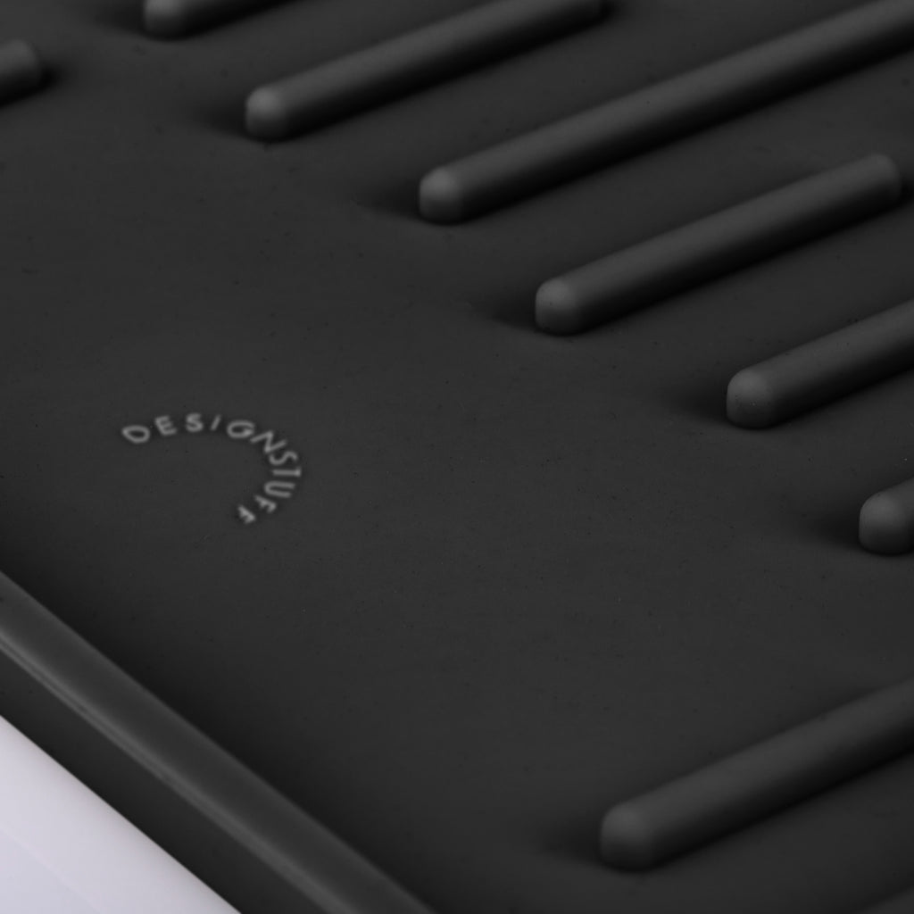 You’ve just found the kitchen essential you’ve been longing for, the Designstuff minimalist silicone dish mat! Crafted from soft, flexible, and non-slip silicone, its discrete design combines functionality with style, ensuring a tidy, dry, and clean bench. The perfect companion for drip-drying glassware, dishes, and cutlery, it also conveniently folds up for easy and compact storage. Say goodbye to the sport of balancing wet dishes on your countertops, with this silicone dish mat, you’ll be the gold medalist of drying!