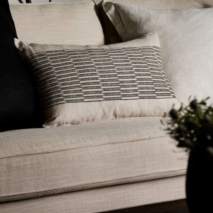 The Xavier Black/Linen Cushion features a fine line check print printed on a linen base with plain reverse.