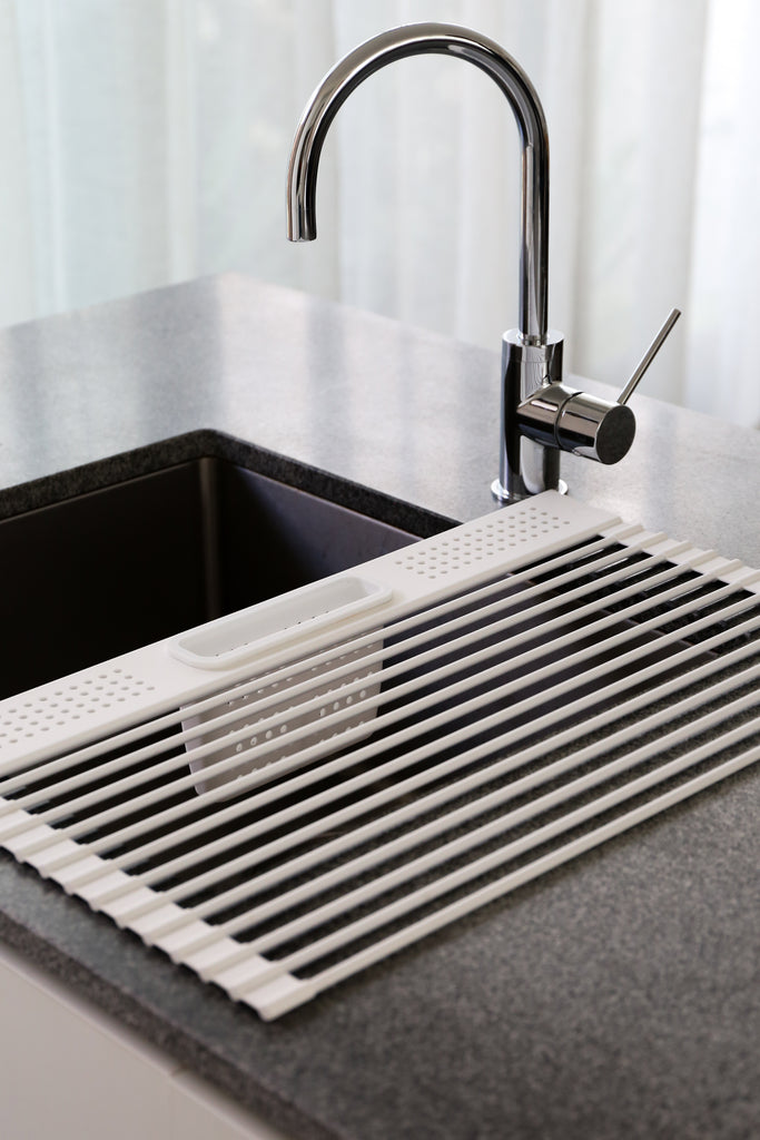 The Folding Dish Rack with Cutlery Holder combines durability and functionality with heat resistant silicone, a spacious design, and a built-in cutlery holder. Its foldable structure ensures easy storage, making it a versatile, space-saving solution for any kitchen. Say goodbye to the sport of balancing wet dishes on your countertops, with this silicone dish rack, you’ll be the gold medallist of drying!